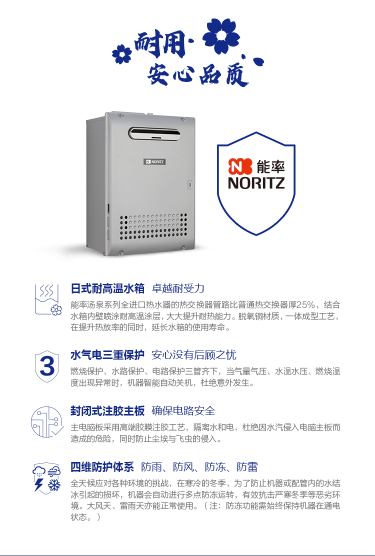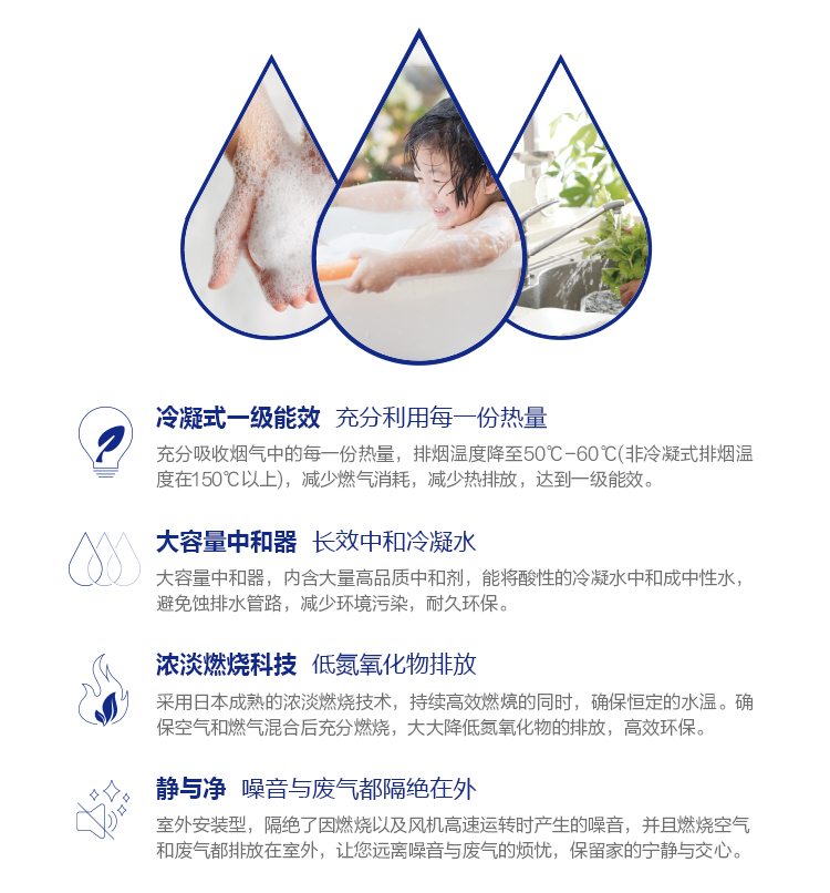 安全装置:熄火安全、防空烧安全、停电时安全、过热安全、导向防雷、防过压安全、防冻、中和器堵塞检测、风机转速检测、防沸腾、防漏电安全、防过电流装置