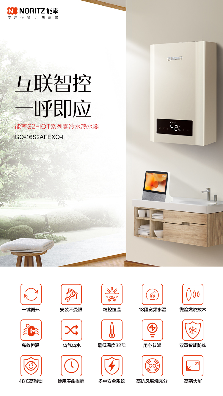 32度微焰燃烧技术 炎热夏季也有舒适水温